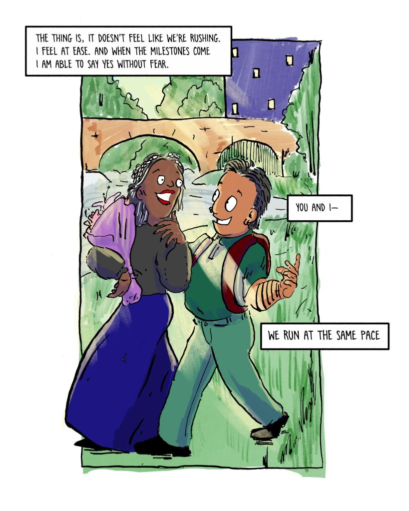 The thing is, it doesn’t feel like we’re rushing. I feel at ease. And when the milestones come, I am able to say yes without fear.